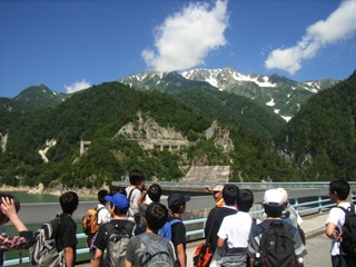 初日は、テプコ館・高瀬ダム・発電所・岩魚養魚場を見学しました。2日目は、立山黒部アルペンルートを、扇沢から黒部ダムを通って室堂まで登り、室堂平を散策して降りてきました。最終日は、白馬でブルーベリー摘み体験をし、松本城を見学して、明法へ戻りました。
