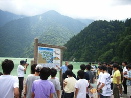 | 高瀬ダムで説明を受ける | 黒部ダムと立山 | 室堂のみくりが池にて記念撮影。背景は立山(雄山) |