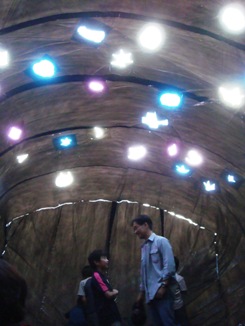 5分程でバルーンは完全に膨らみました。順番にバルーン内に入っていく児童たちからは、歓声が上がっていました。しばらくすると静かになっているので中をのぞいてみると皆、寝転がって自分のつくったカラフルな惑星を見上げているようでした。その後バルーンを皆で持ち上げたり、動かしたりと遊び、学習を終えました。