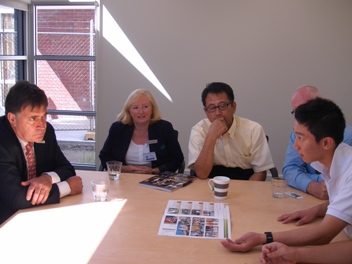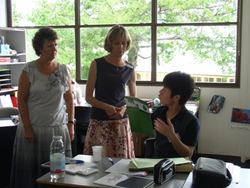 | 現地校の校長先生に明法を紹介する | 国際交流担当の先生たちと | 明法を紹介する |