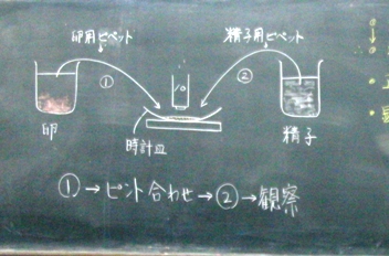 | 最重要ポイントを板書 | 受精完了(ほぼ100%) | 1~4時間後の混合 |