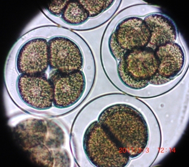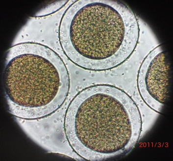 | まずは未受精卵の確認作業 | 精子を滴下! 息を呑む瞬間! | 最後にウニを輪切りにしました 五放射相称型がはっきりわかります(卵巣も5つ) |