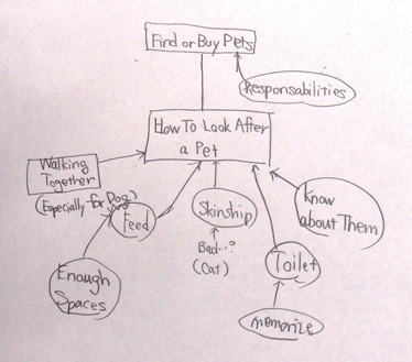 初日はマインドマップを利用したブレインストーミングの技術(アイデアを出すためのグラフィックを用いた手法)を学ぶことからスタート。2日目の前半は、そのアイデアを論理的なパラグラフ(英文で書かれた段落)に落とし込んでいく訓練を行い、後半のレッスンでは、パワーポイントの基本操作を学習。その後、英語でのプレゼンテーションに向けて、生徒たちは各々、自分が心の底から好きなこと(トピック)を選び、スライド作成に取り組みました。
