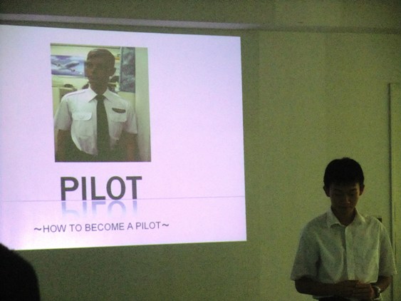 最終日の3日目。講師の先生からマンツーマン指導を受けた後はいよいよ本番の発表会。聴衆には校長先生をはじめ、担任の先生や英語科の先生方がずらり。そんなプレッシャーの中、一人一人が見事に個性的なプレゼンテーションを披露してくれました。