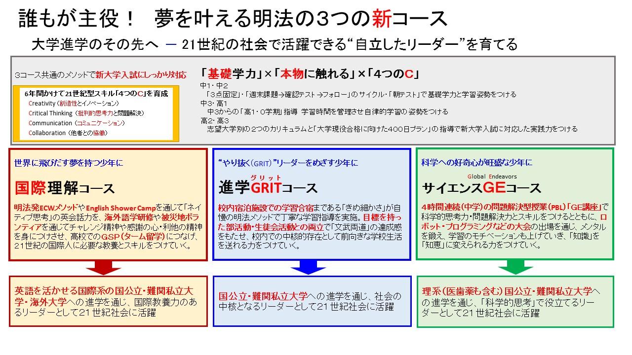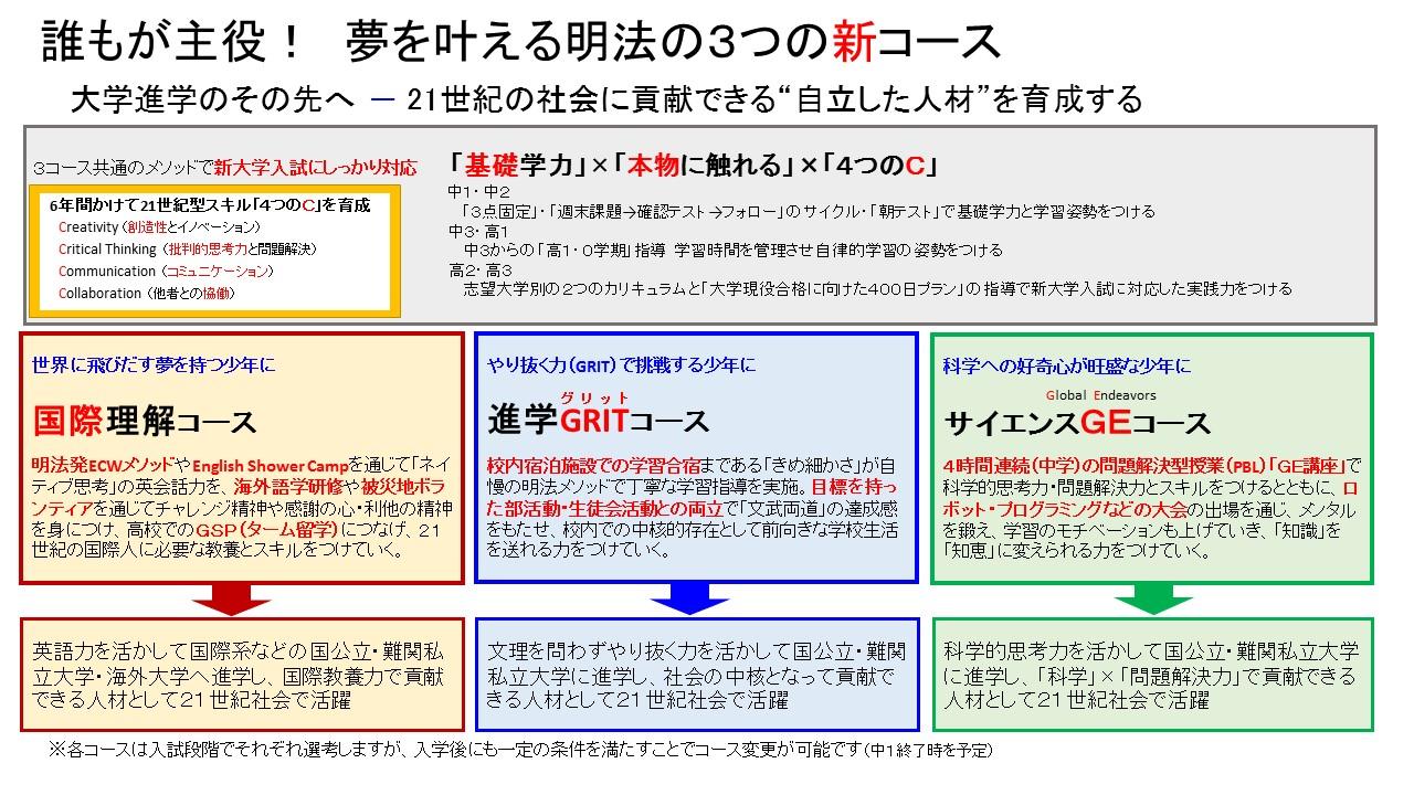 平成30年度より、明法中学校は3つのコースを設置し、21世紀社会で活躍できる自立した人材を育てます。