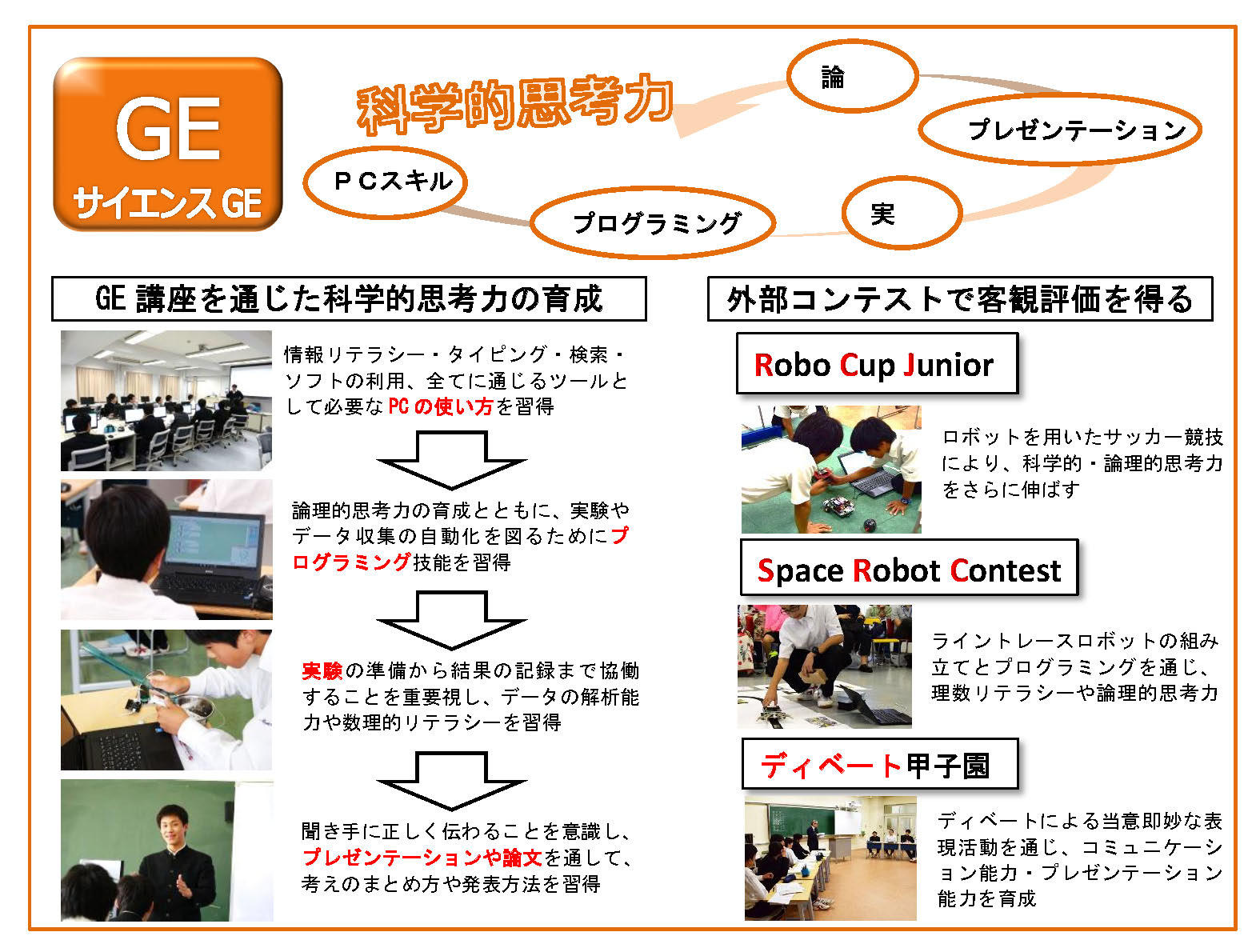 このような行事とリンクする週1回4時間連続のGE講座で科学的思考力を身につけて、高校でのより高度なプログラムにつなげていきます。