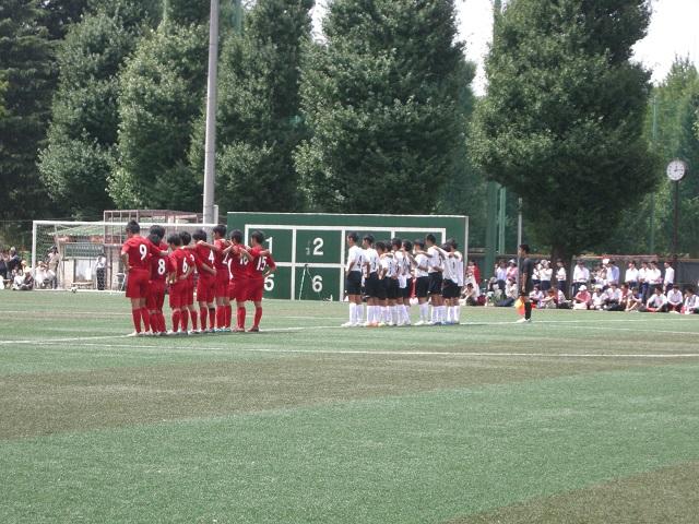 共通の守備意識を持って相手の攻撃を防ぎながら、カウンターで相手ゴールに何度も迫り、決定的な場面を作るが精度を欠いて得点に結び付かないまま前半を終える。後半、相手のCKで一瞬の判断ミスから失点してしまう。その後も相手ゴールに何度も迫るが得点できないまま試合終了のホイッスルが鳴り、悔しい敗退となりました。 来春のインターハイ予選に向けて気持ちを切り替えて練習に取り組んでいきます。今後も明法高校サッカー部の応援よろしくお願いいたします。