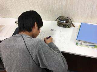 CAMPに参加している生徒は、休日にも関わらず、朝から勉強しています。