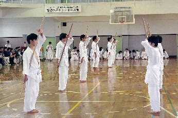 秋の明法祭で恒例となった棒術部の演武会風景です今年の明法祭は10月3、4日の予定です体育館に大勢の観客を集めます