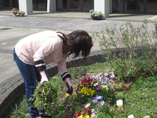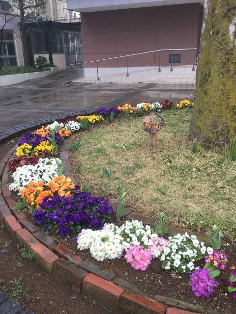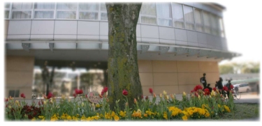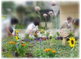 正門を入ると若葉が輝くケヤキの大木、その根周りを飾るのは父母の会「花と緑のボランティア」による花壇です。本校は質実剛健を旨とする「男子校」ですが、心に潤いを持って欲しいという保護者の方々の熱い思いから花壇は生まれました。花壇の縁取りのレンガは廃物でしたが、洗ってアンティックとして再生したものです。保護者の方々の優しい心遣いが花の美しさとともに生徒に伝わっていると思います。