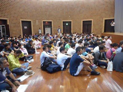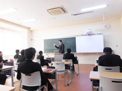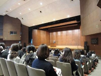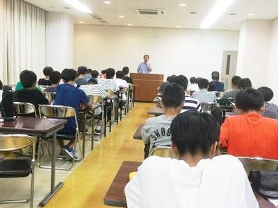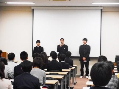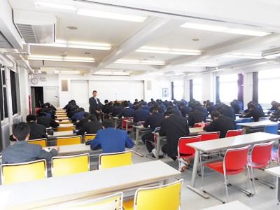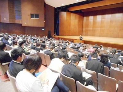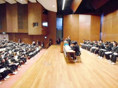 午前中、4月から入学する高校生の準備説明会を講堂で行いました。
