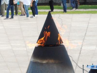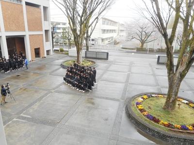 "明法生全員で宇宙に一つしかないアーチを創った"