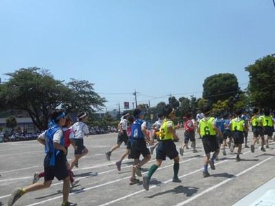 「体育祭のその日は太陽が地面を焦がすように照り付け、風は砂塵を高く巻き上げ、雲は激しい風に流されていた。その様子は、私たちの活気・熱気に触発されたかの様であった。誰もが一番高きところにある優勝に手を伸ばし、我がH1Bもその一つであった・・・・・」(学年通信"さわやか"に掲載された高1生徒のコメントより)