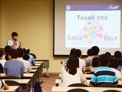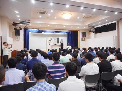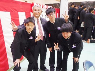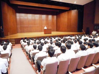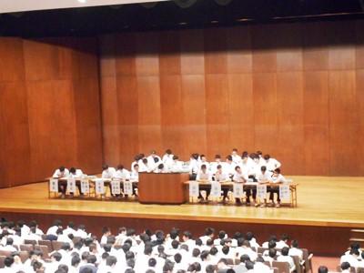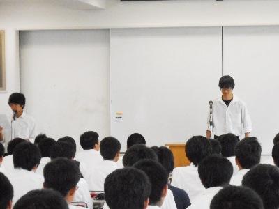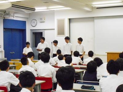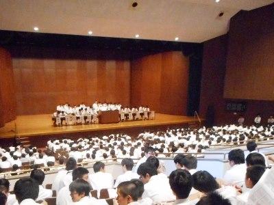 今年4月、生徒会長の鈴木勝司良(高2)君が「8時30分の朝礼開始をみんなで守ろう!」、と全校生徒に語った。翌週、足早に会場に駆け込む生徒が急増したのは、言うまでもない。