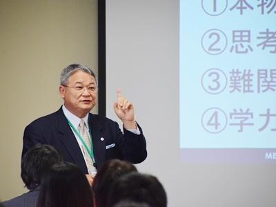 演題は「大学入試改革とグローバル人材の育成~ これから問わる英語力と人間~」