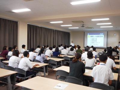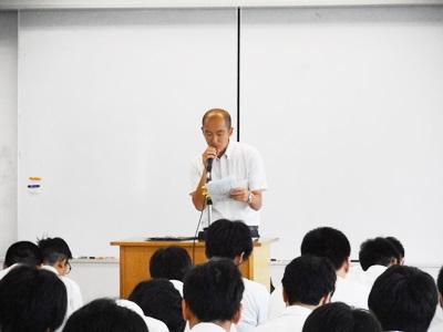 全体会では、高校部長からは学校生活全般、各教科からは学習の心構えなどの話。