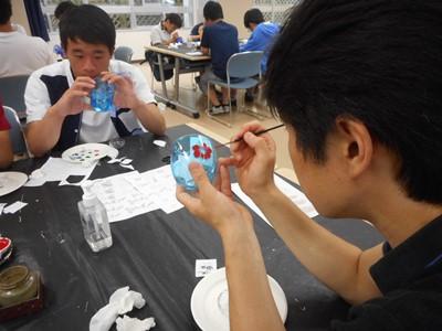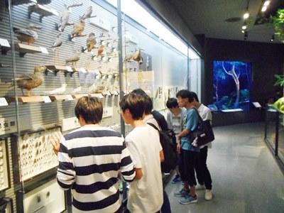 第一体育館と音楽棟の間は、武蔵野の原生林の様相でシイの木が多く、数種のドングリが夥しく採れます。科学部では、「ドングリ銀行」(ドングリの苗を育てて配り豊かな自然を創る組織)に参加していますが、ここ2年はドングリの採集数ゼロで、ドングリ貯金はできていません。原因は不明です。また、科学部はセミの抜け殻を採集しています。明法祭で展示した抜け殻は約2000個。温暖化による「クマゼミ」の北上をクマゼミの抜け殻で証明することが目的です。科学部は、ソーラーバイク、手作りエアドームのプラネタリウムで、新聞に掲載されたことがありますが、ものつくりと水質調査に加え、豊かな自然を豊かに親しんでいる様子は素晴らしいと思います。