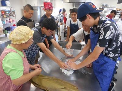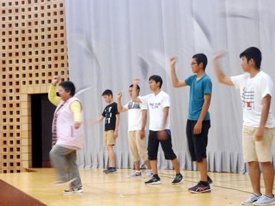 そして、8月31日(金)の午前11時、夏休みの練習の集大成として、海坊主(男子シンクロ)の演舞が始まった。2ヶ月間にわたる格闘の末、先輩、後輩の"絆"が見事に表現されたのである。