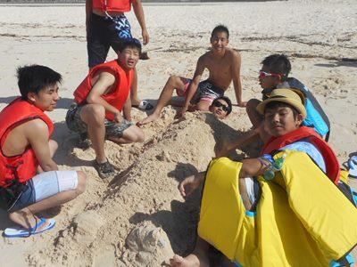 日に焼けた海坊主たちの笑顔がまぶしい。そこには、2ヶ月前の不安は、あとかたもなく消えていた。唯一残っていたのは、先輩から後輩へつなぐ明法生の確かなる"絆"であった。