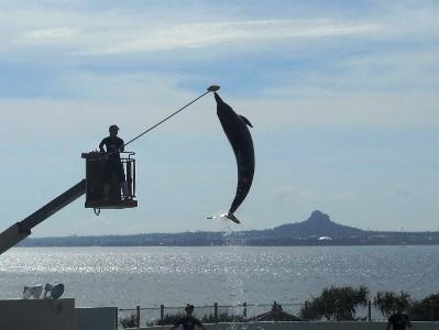 ※ NHKBS3でも取材があった"海坊主"男子シンクロの演技。写真は、今回初挑戦の大技、メガホンスプラッシュ大回転。見事、明法祭のグランプリを受賞した。 (写真提供は父母の会 玉腰多恵子さん)