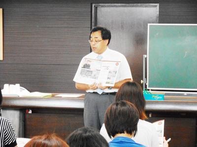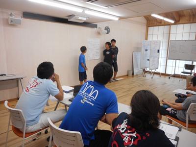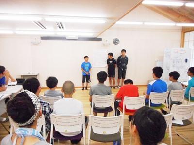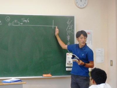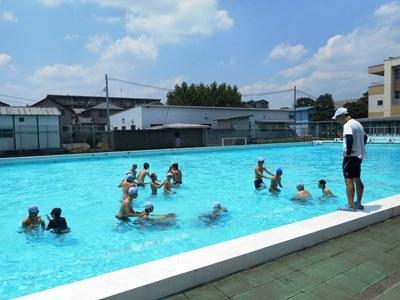 「正しいフォームを身につけるためです。」と答弁に立つ水泳部部長。