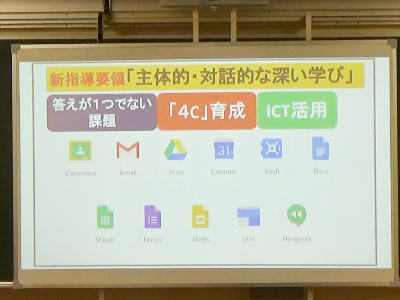 最初に、私が学校の様子を基調講演としてお話しさせていただきました。