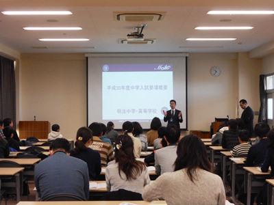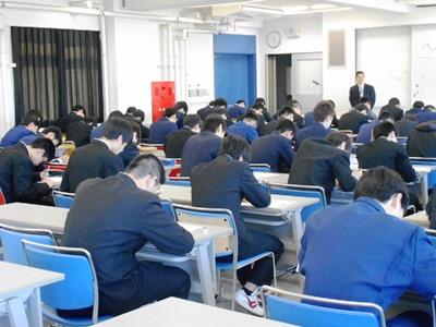 そのあと、生徒と保護者は分かれて、生徒は50分間の課題確認テストと証明写真撮影など、保護者の方には事務関係の説明がありました。