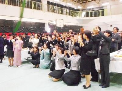 午後、体育館で、父母の会主催の「卒業を祝う会」が行われました。