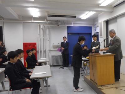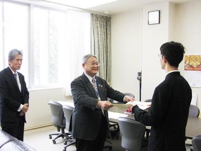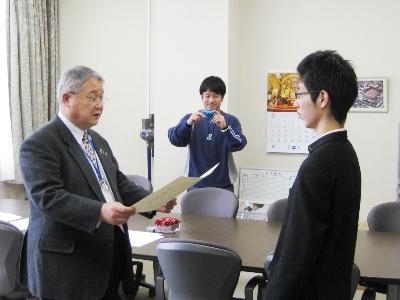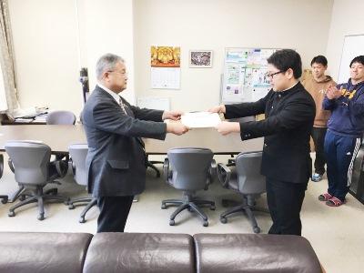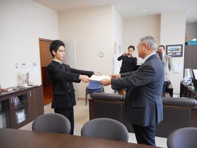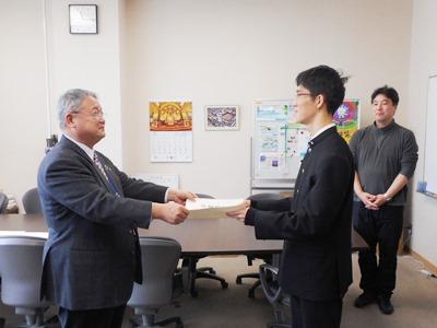 本日午前中、卒業式で欠席した生徒2名に卒業証書を手渡した。