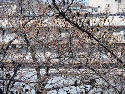 敷地内の桜の花芽はうっすらとピンク色になって、みんなの入学式を待っているようでした。