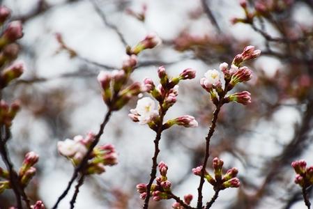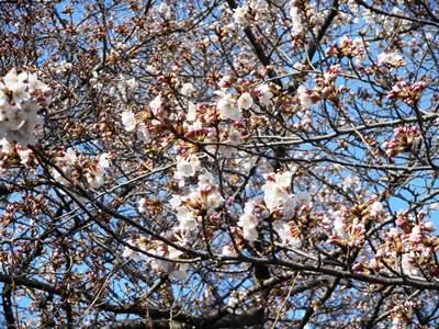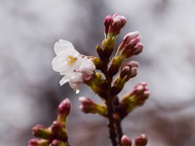 終業式前には咲いていなかった桜の花が、終業式後に咲いていた。