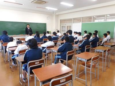 3学期終了後、第1視聴覚室で中学校第52回修了式を行いました。